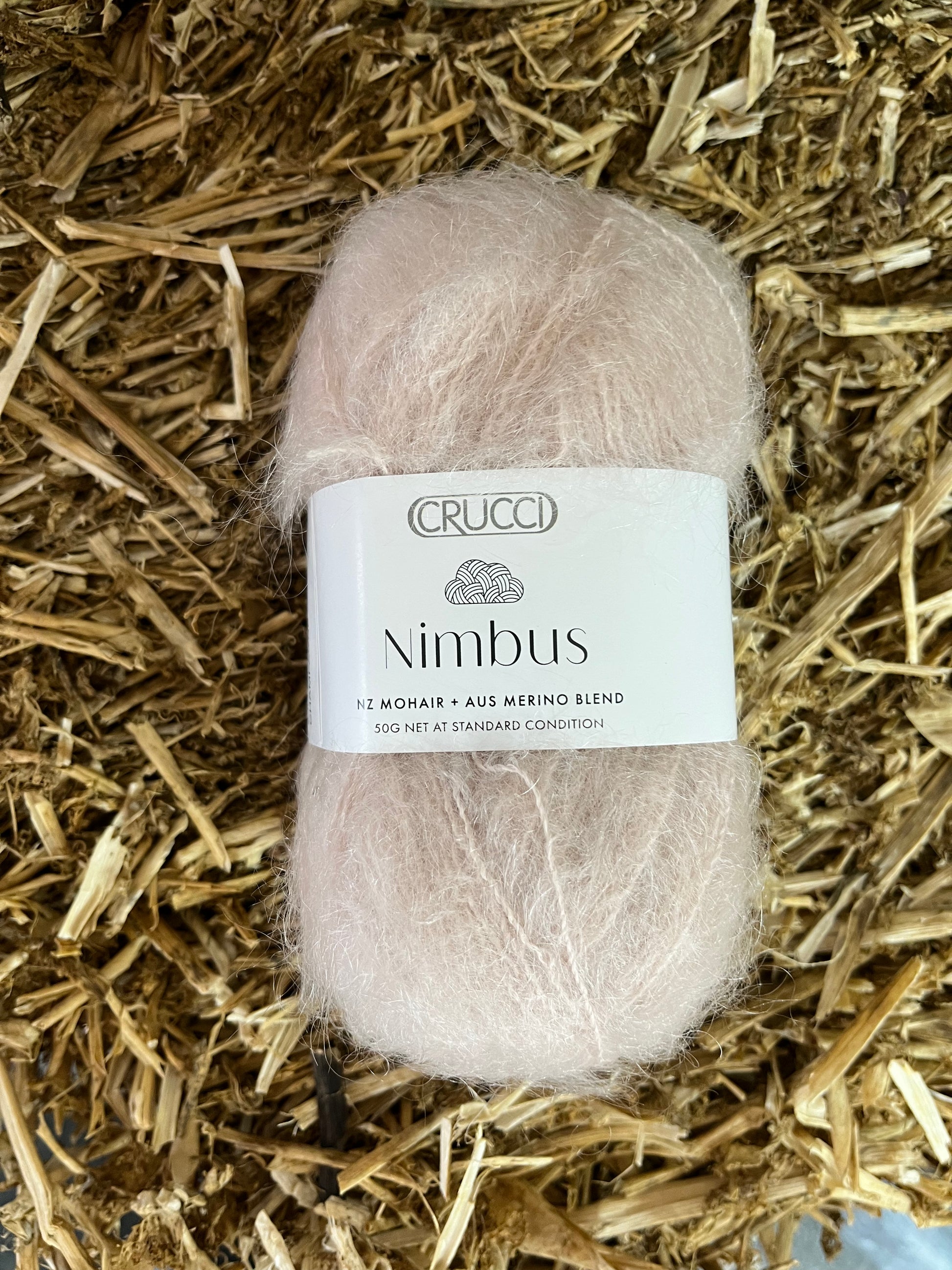 Crucci's gorgeous brand new Nimbus 12ply Mohair blend yarn: 75% New Zealand kid mohair, 20% merino, 5% binder.