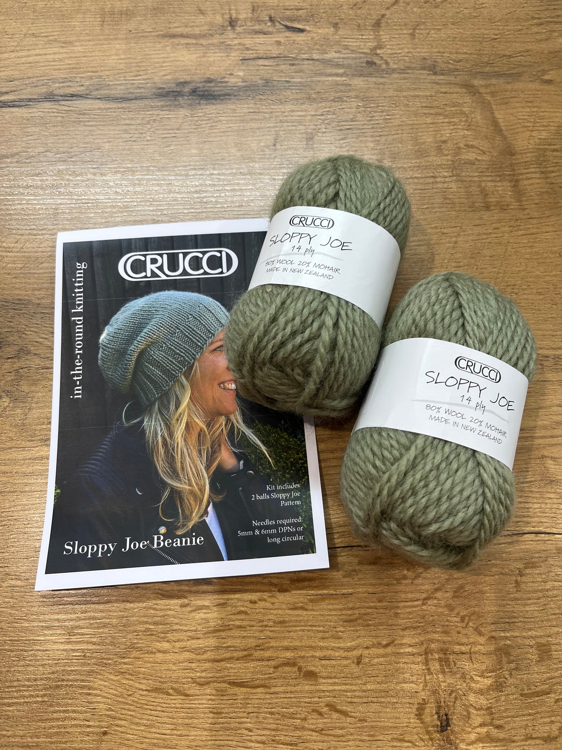 Kit includes our easy beanie pattern and our lovely 14ply Sloppy Joe 80% wool, 20% mohair yarn.